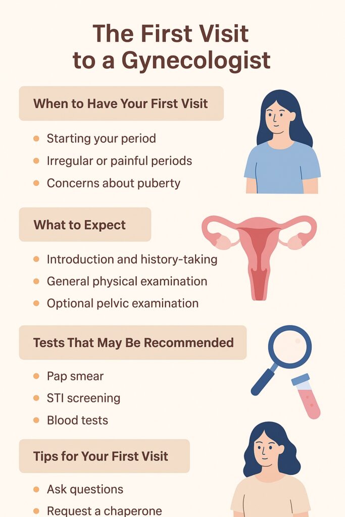 The first visit can be a mix of conversation, general examination, and sometimes specialized tests depending on your age, history, and symptoms. It’s natural to feel nervous, but remember that gynecologists are trained to make the process comfortable and confidential.